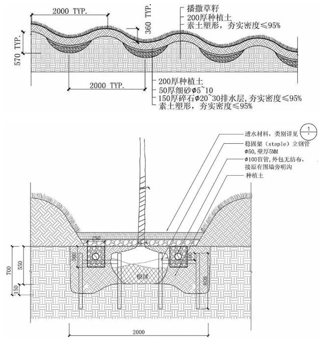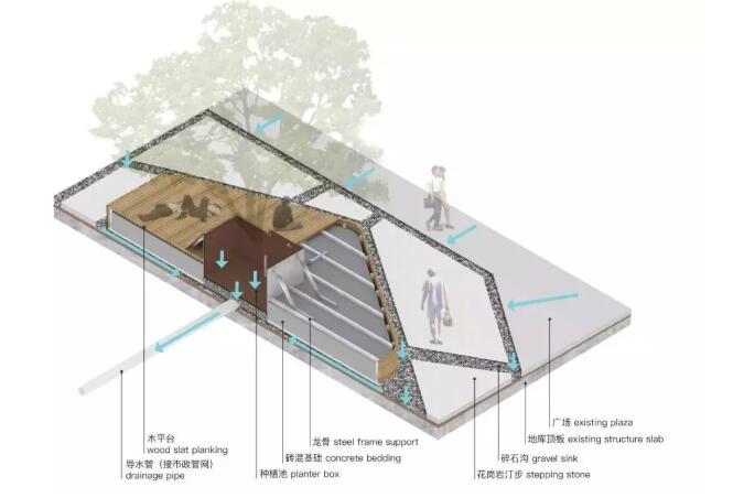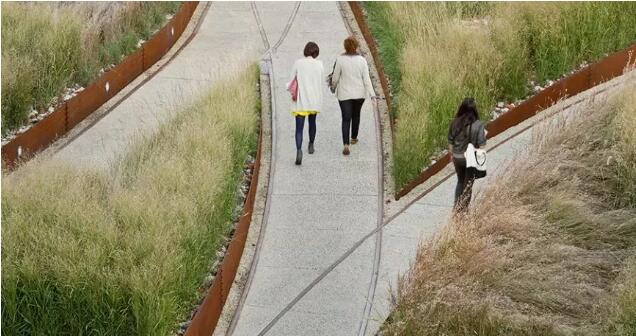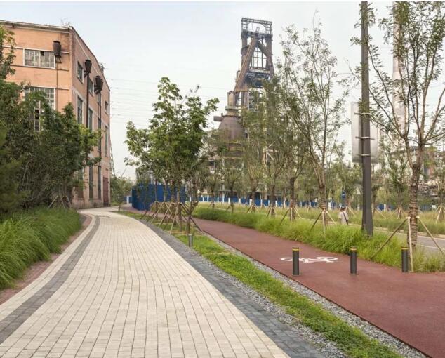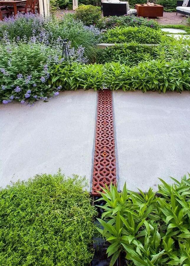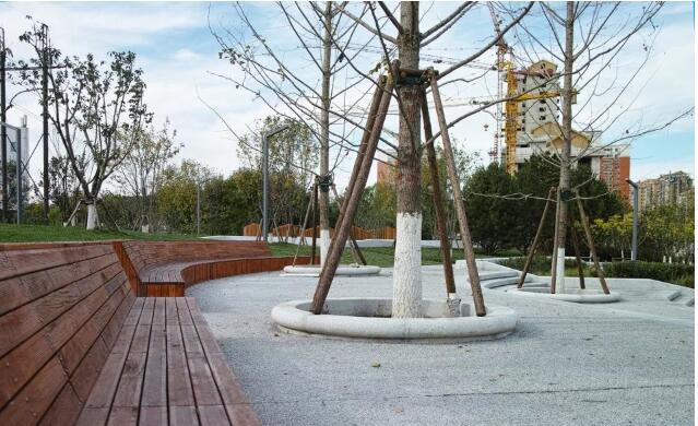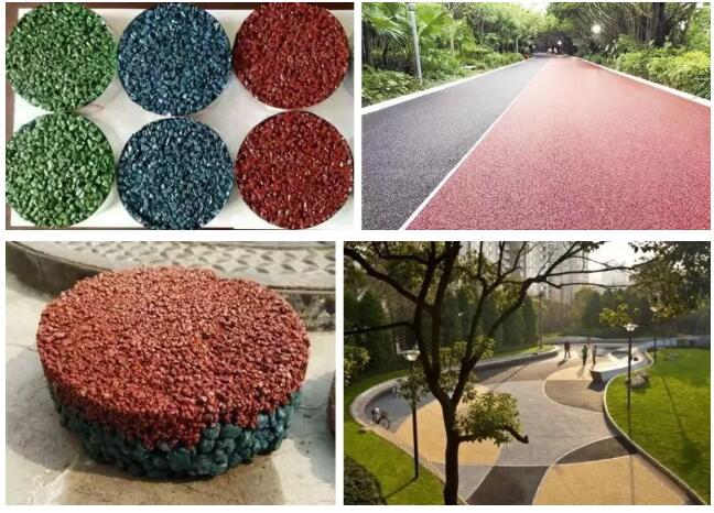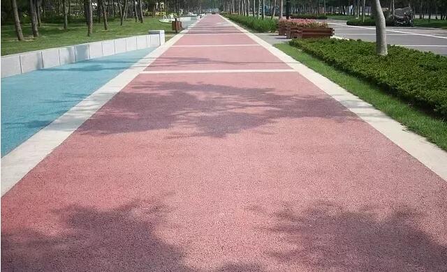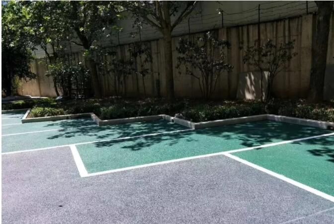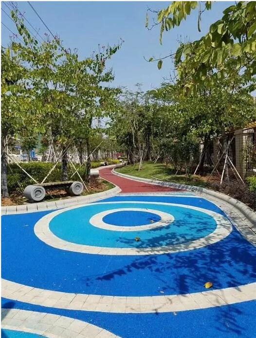 彩石透水材料及透水塑膠的透水系數(shù)極高,往往是透水瀝青混合料及透水水泥混凝土的數(shù)十倍,但也容易出現(xiàn)脫膠、破損等現(xiàn)象,耐磨性較差,因此常將它們用于方便維護(hù)的特殊人行鋪裝,如入口節(jié)點(diǎn)、建筑附屬場(chǎng)地、兒童活動(dòng)場(chǎng)地、靠近建筑或出入口的主要園路等。