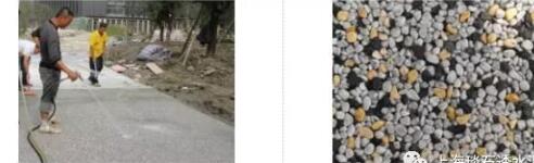 (4)面層效果要求:在達(dá)到孔隙率與透水性、強(qiáng)度與耐久性等要求的基礎(chǔ)上,須滿足表觀要求,面層洗出后,不可殘留漿體,不可大片脫落石頭,裸露石子色彩分布均勻,具有較好的裝飾效果。
