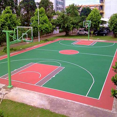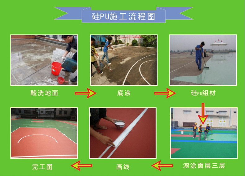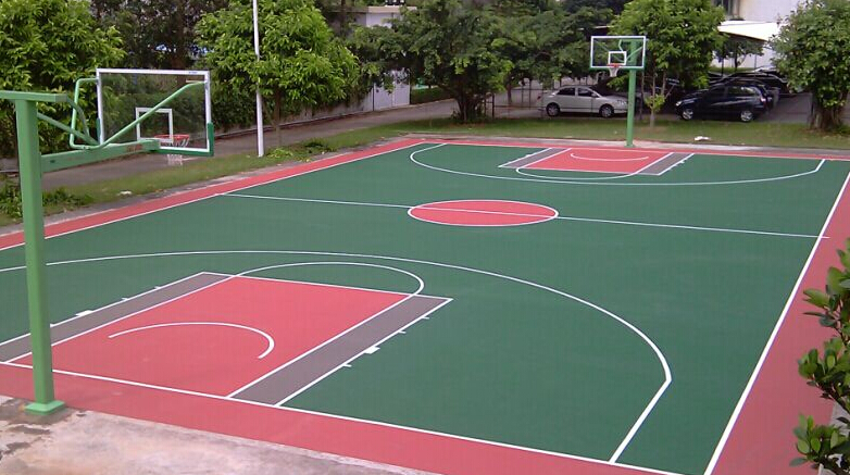 硅PU籃球場使用的硅PU材料是在PU球場材料的基礎(chǔ)上開發(fā)研制出來的新一代球場地面鋪裝材料,從根本上有效地解決了PU球場材料在專業(yè)性能、環(huán)保施工、使用壽命、日常維護(hù)等方面的不足之處,具有實(shí)用、環(huán)保、專業(yè)、經(jīng)濟(jì)的優(yōu)良性能。硅PU籃球場是由有機(jī)硅改性聚氨酯材料作為涂料,分多層(底涂、彈性層、加強(qiáng)層、面層)涂刮而成的新型塑膠球場;具上彈下彈結(jié)構(gòu)特征,屬于一種健康型專業(yè)彈性合成球場地面系統(tǒng)。