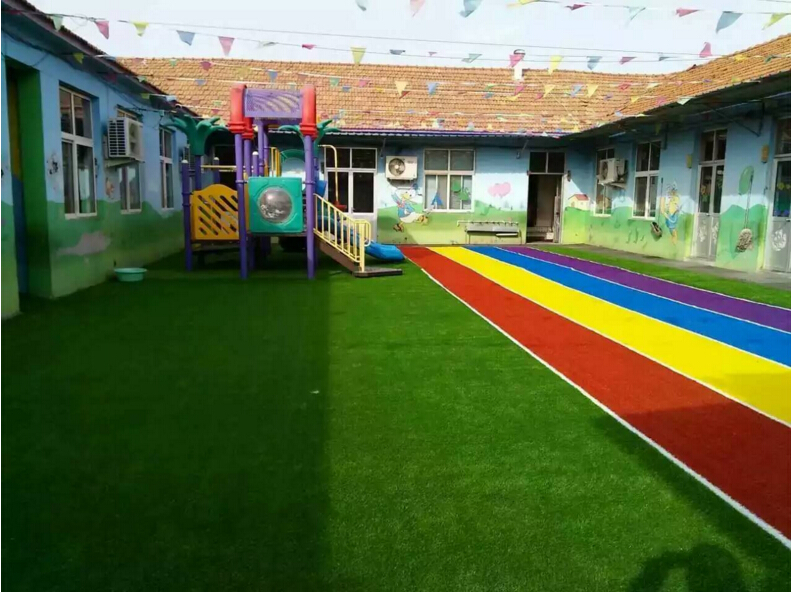 幼兒園人造草坪被廣泛用于幼兒園、以及各類兒童比賽的會場布置、兒童樂園人造草坪的場地布置