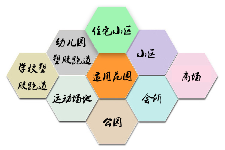 塑膠跑道主要適用于各級(jí)各類學(xué)校、幼兒園、專業(yè)體育場(chǎng)、田徑場(chǎng)跑道、半圓區(qū)、輔助區(qū),全民健身路徑,室內(nèi)體育館訓(xùn)練跑道,游樂場(chǎng)道路鋪面,室內(nèi)外跑道、網(wǎng)球、籃球、排球、羽毛球、手球等場(chǎng)地,公園、居民小區(qū)等活動(dòng)場(chǎng)地。