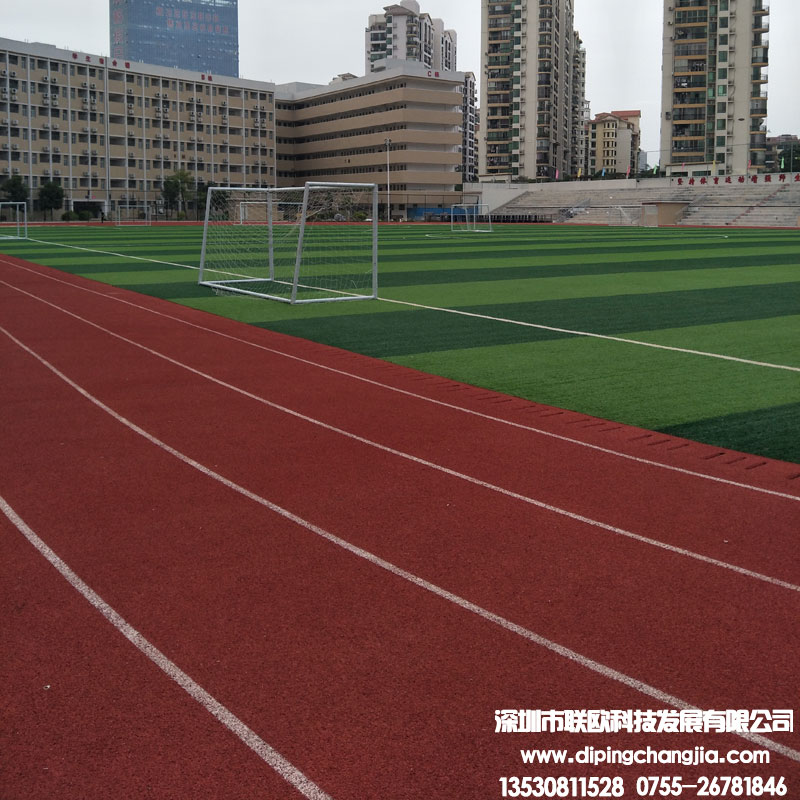 混合型塑膠跑道是國際標(biāo)準(zhǔn)認(rèn)可的混合結(jié)構(gòu),底層用PU膠漿和彈性黑膠粒材料在現(xiàn)場(chǎng)按一定比例混合、攪拌均勻、攤鋪、常溫硫化成型,上層防滑面根據(jù)場(chǎng)地要求設(shè)計(jì)施工攤鋪、噴撒2mm厚純聚氨酯(PU)料后和撒EPDM橡膠顆粒的方法制作成型?;旌闲退苣z跑道的造價(jià)與復(fù)合型塑膠跑道相差不大。